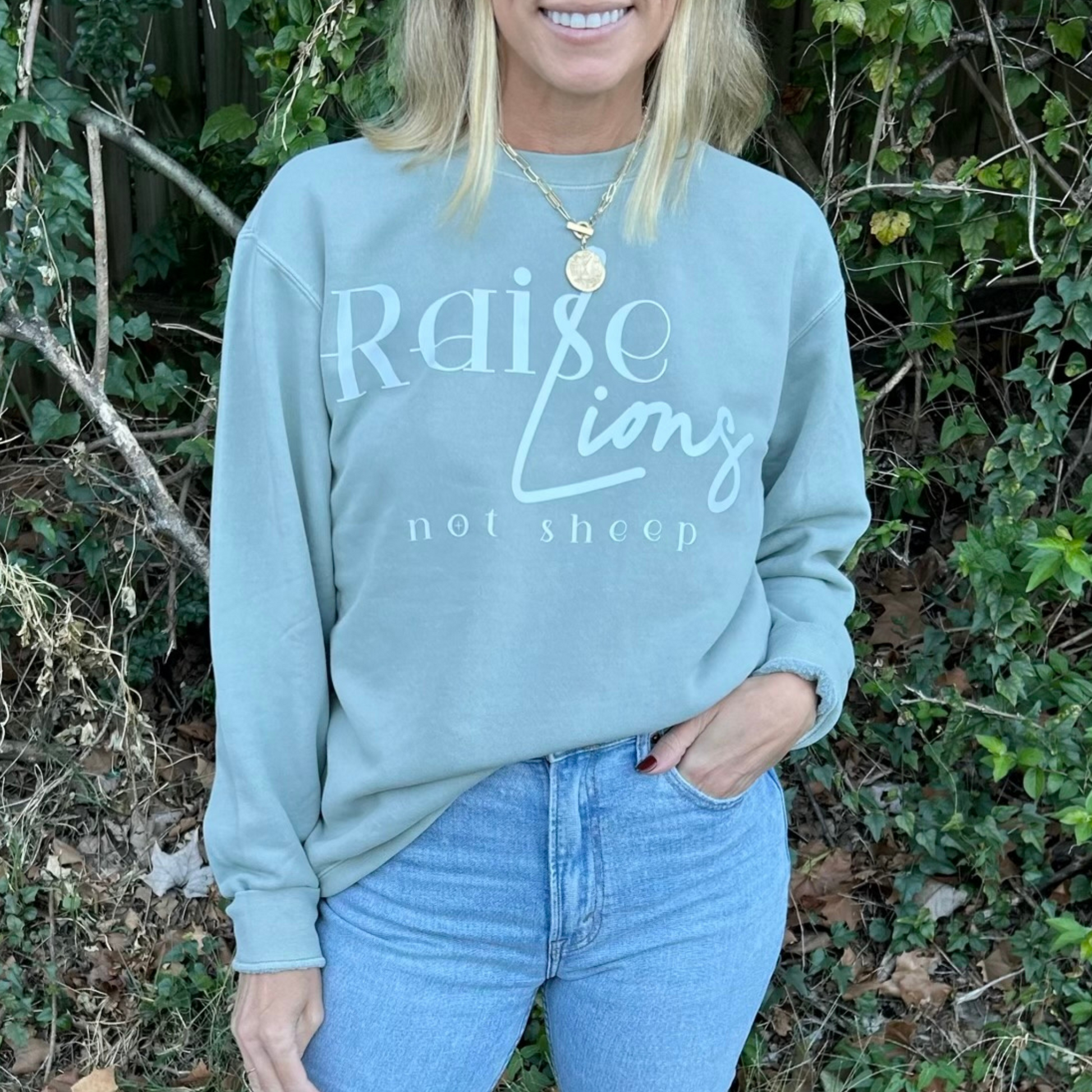 Unleash your bold spirit with our "Raise Lions, Not Sheep" crewneck! This eye-catching shirt is designed for those who dare to stand out and lead with confidence. Made from soft, cozy fabric, it offers all-day comfort whether you’re out and about or relaxing at home.