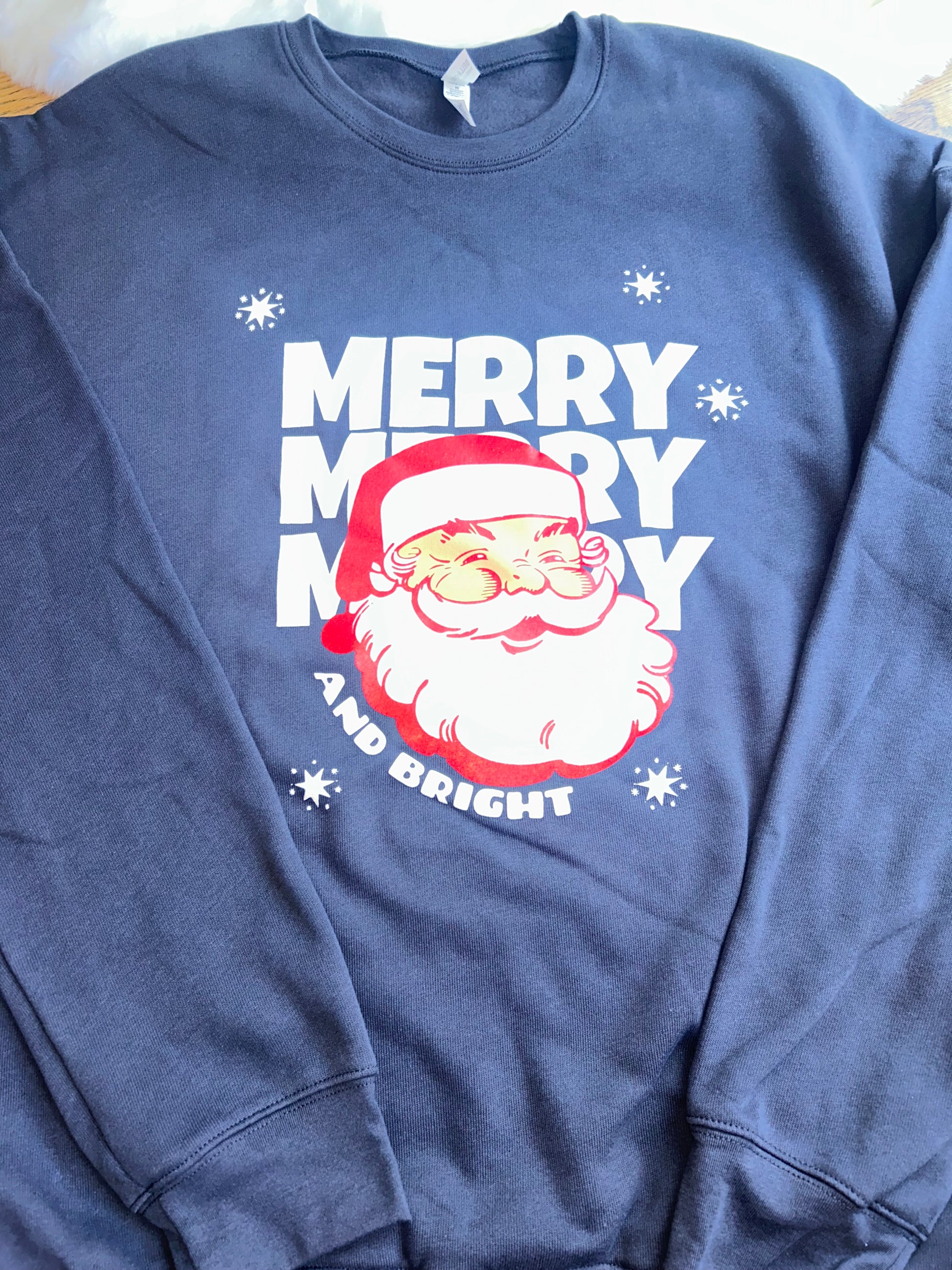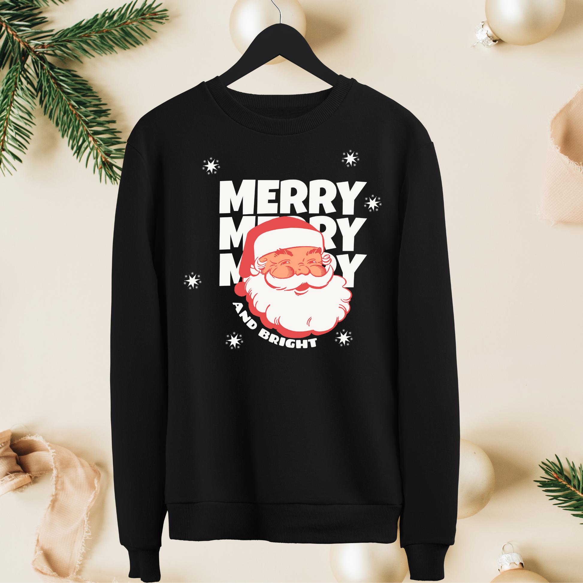 Get ready to spread some holiday cheer with our "Merry and Bright" Santa Claus Screenprint Cozy Sweatshirt! This festive sweatshirt is crafted from ultra-soft, high-quality fabric that wraps you in warmth and comfort, making it perfect for chilly winter days or cozy nights by the fire. Screenprint on black only.